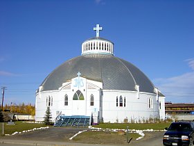 steht dann die Inuvik-Church, einem Igloo nachempfundenen Gotteshaus.