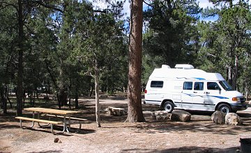 | Abends Ankunft in Grand Canyon Village auf dem Mather Campground. Von Deutschland aus Monate vorher eine