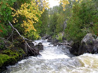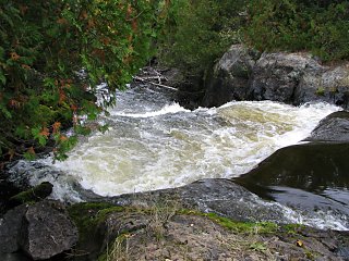 Der Ausfluss des Vice Lakes endet mit 9m hohen Fällen. Direkt bis zu Kante war der Fluss glatt wie ein Spiegel,