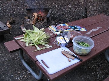 Heute gab es: Salat, Maiskolben vom Lagerfeuer und Brot. Ich gebe zu, das klingt nicht gerade üppig - und war es auch nicht. Das Lagerfeuer war irgendwie nur schwer in Gang zu setzen und zu allem Überfluss fing spät abends ein Geballere an. Entweder gab es hier in der Nähe reichlich Wild zum erschiessen, oder es wurde einfach so geschossen. Echt störend. Hier in Alaska ist aber fast jeder bewaffnet, insofern wohl alles normal. Sehr angenehm war heute, dass es einfach nicht dunkel werden wollte. Noch um 23 Uhr war es eher dämmrig als Nacht.