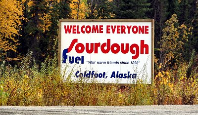 Das Wetter wurde etwas besser und mein Diesel im Tank immer weniger. In Coldfoot ist eine Tankstelle und eine Tourist Info - das war's. Hier gibt es keinen Supermarkt, um Vorräte zu ergänzen. Insofern war der Fred Meyer in Fairbanks die letzte Gelegenheit für echtes Shop-Til-U-Drop.