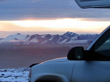 Am folgenden Morgen einen schönen Sonnenaufgang erlebt. So richtig kalt ist es geworden, hier oben pfeift der Wind ja auch ungeschützt. Heute stand das letzte Stück bis Deadhorse/Prudhoe Bay auf dem Programm, ausserdem eine sogenannte Oilfields-Tour.