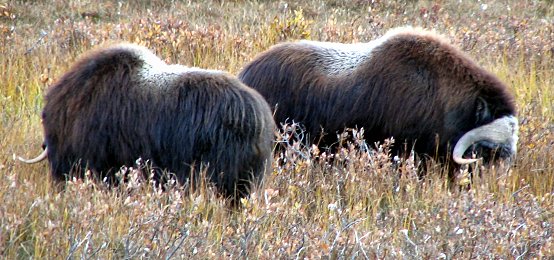 Allzu weit wollte ich heute nicht mehr fahren. Der Sagavarniktok River kam wieder in Sichtweite, ebenso meine kleine Moschusochsenherde.