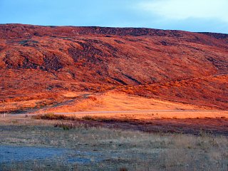 Kurz nach der Grenze zu Canada leuchteten die Berge in der Abendsonne und genau hier machte ich