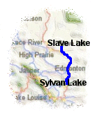 Die Fahrt nach Norden die erste Zeit unspektakulär (s.o.). Vor Slave Lake dann endlich Wald und etwas hügeliger.